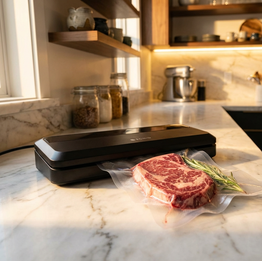 ボタンを1回押すだけで、センサーが空気量を検知。脱気からシール(熱圧着)まで一括で完了します。